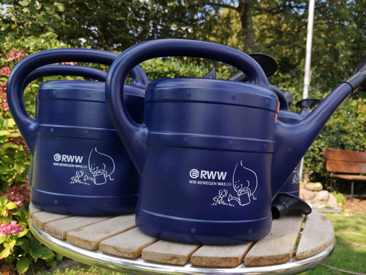 Die Rheinisch-Westfälische-Wasserwerksgesellschaft mbH hat dem Verein im Rahmen einer Werbeaktion zum Thema "Trinkwasser" einige Gießkannen übergeben.